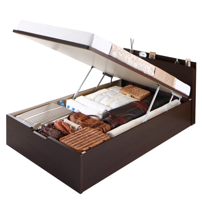 【ポイント10倍】収納ベッド レギュラー・セミシングル【Mulante】【マルチラススーパースプリングマットレス付き】フレームカラー:ナチュラル コンセント付き_フラットヘッドボード_跳ね上げベッド【Mulante】ムランテ【代引不可】
