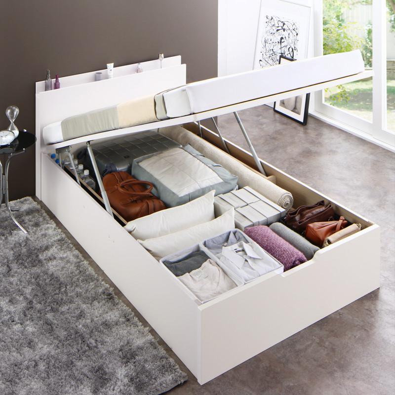 組立設置付 長く使える 国産 頑丈 大容量 跳ね上げ式ベッド 収納ベッド BERG ベルグ マルチラススーパースプリングマットレス付き 縦開き セミシングル 深さラージ(代引不可)
