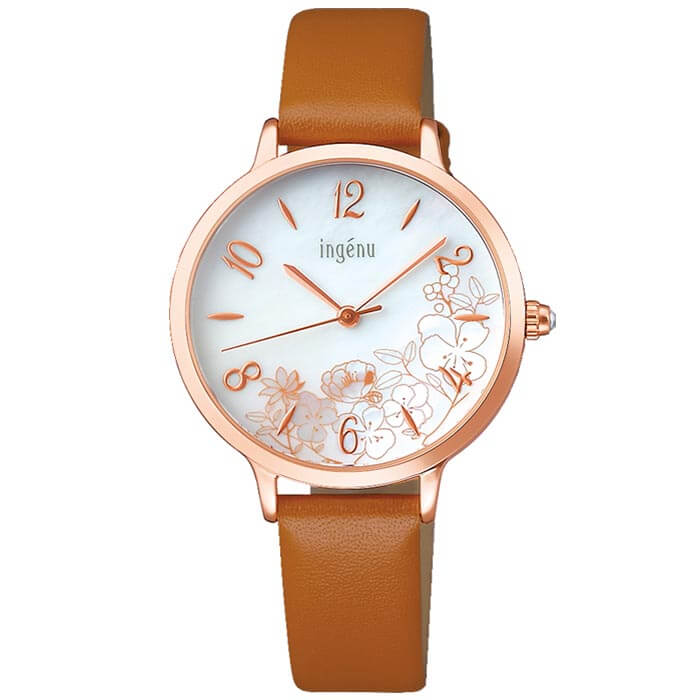 お手頃価格ながら7気圧×ステンレスケースで機能・実用性も○型番 AHJK453 ケース材質:胴部SGP(ピンクゴールド色めっき) 裏ぶた部SSサイズ約:縦36×横30mm重さ約:22gベルト幅:12mmベルト材質:牛皮革(カーフ)カラー:ブラウンムーブメントクォーツ機能風防素材:カーブ無機ガラス留め金:美錠平均月差±20秒白蝶貝ダイヤルスワロフスキー®・クリスタル入りりゅうず防水機能防水性:日常生活用強化防水(5気圧)付属品ingenu特製ギフトBOX保証書取扱説明書※説明書・保証書に関して入荷時期により仕様、内容が一部異なる場合がございます。