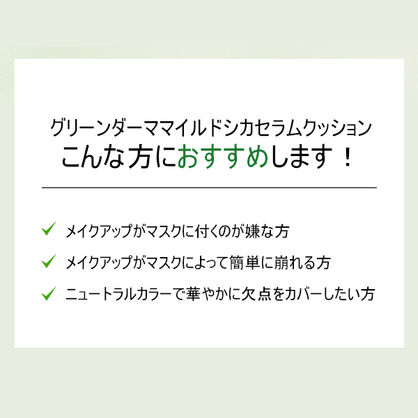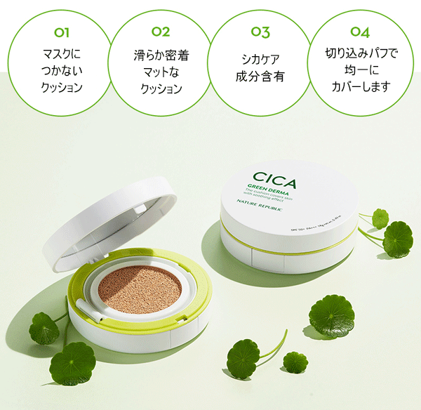 NATURE REPUBLIC ネイチャーリパブリック グリーンダーマ マイルド シカ セラム カバー クッション GREEM DERMA The chushion covers skin with sooting effect SPF50+PA+++ 14g 送料無料 一部地域除外 韓国コスメ メイクアップ ファンデーション クッションファンデ