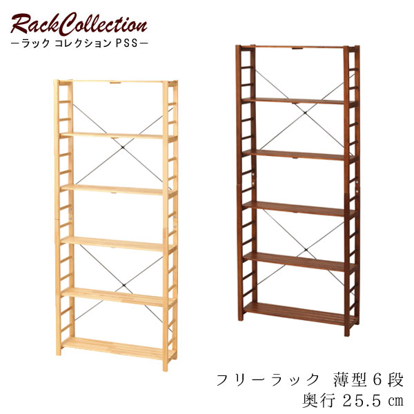 フリーラック 薄型 スリム 幅78cm 奥行25.5cm 高さ187cm 6段ラック ブラウン ナチュラル 天然木 パイン フリーラック オープンラック スタイリッシュ シンプル カッコいい カッコイイ かっこ良い 北欧 モダン おしゃれ【QSM-160】【1P】
