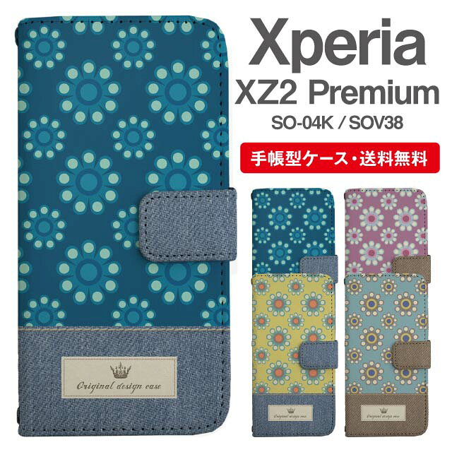 スマホケース 手帳型 Xperia XZ2 Premium スマホ カバー SO-04K SOV38 エクスペリア おしゃれ エクスペリアケース Xperia XZ2 Premiumケース 北欧 花柄 フラワー パターン フェイクデザイン デニム風