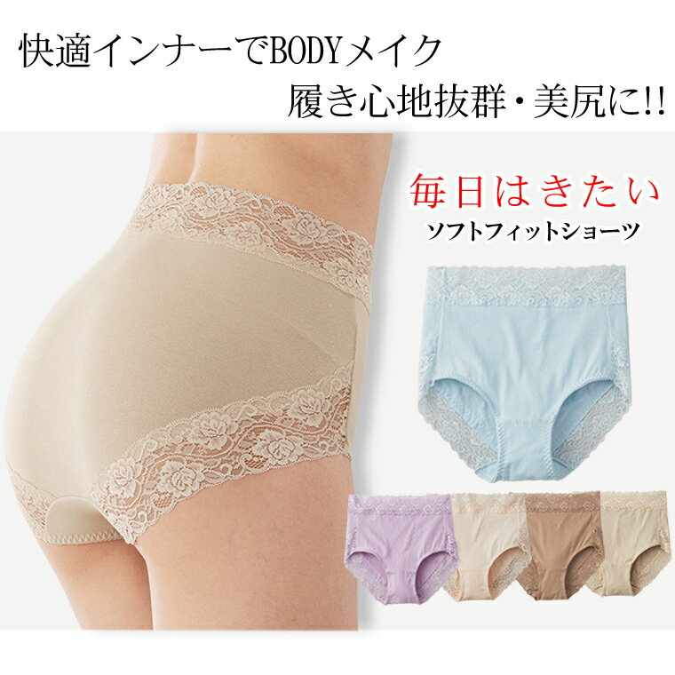 サイズ ※単位:cm ※ヒップはヌード寸法快適インナーでボディメイク!履き心地抜群で美尻に! 下半身ケア インナー ショーツ お買得 深丈 キレイ ボディライン 美尻 バックレース パンツスタイル ひびきにくい アウトライン ソフト フィット レディース 女 女性用 30代 40代 50代 60代 普段通りの生活でも履くだけで「やさしい履き心地」「美尻」を実現。