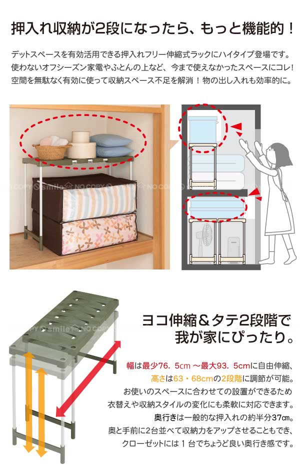 デットスペースを有効活用できる押入れフリー伸縮式ラックにハイタイプが登場。