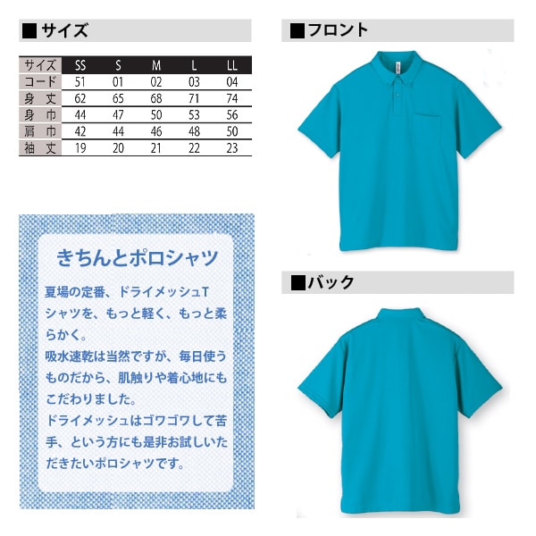 ドライポロシャツ ポロシャツ 半袖 吸汗 速乾 UVカット 紫外線対策 メンズ レディース キッズ 男女兼用 チーム 飲食店 学園祭 父の日 スポーツ ゴルフ 通学 通勤 ビズポロ ユニフォーム 制服 白 黒 紺 など