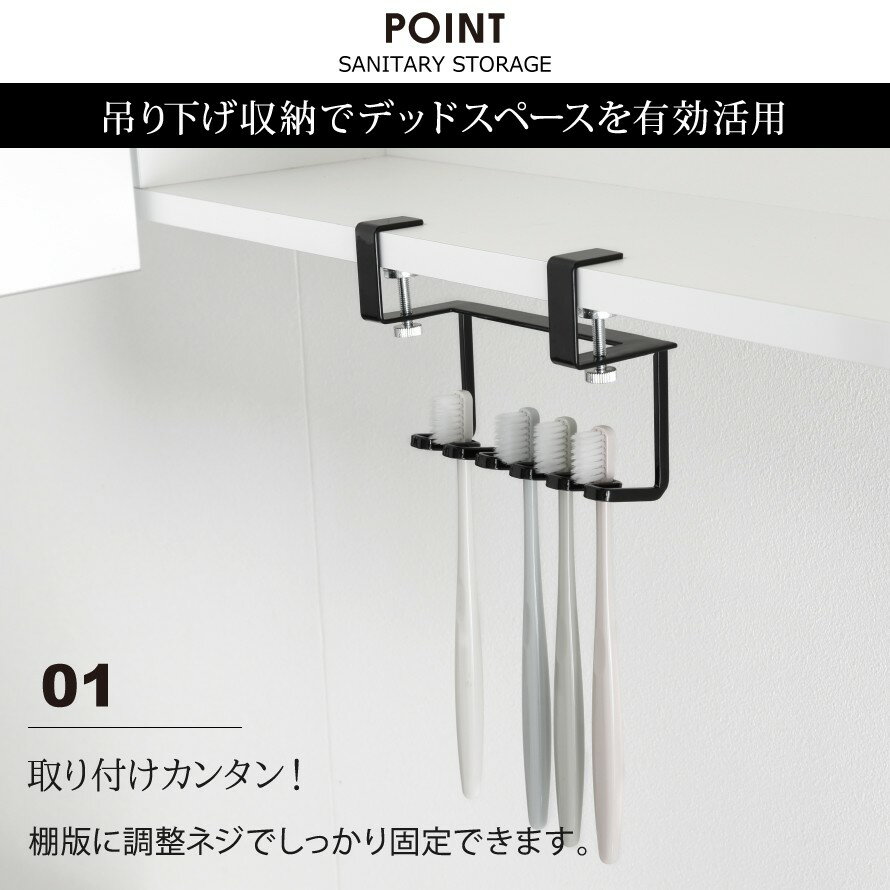 歯ブラシ ホルダー スタンド 戸棚下 戸棚 棚下 吊り下げ 洗面台 収納 ラック 収納ラック 洗面所 洗面室 洗面戸棚下歯ブラシホルダー タワー tower シンプル ホワイト ブラック 山崎実業 yamazaki