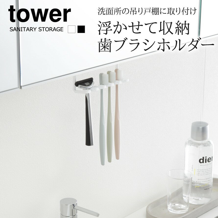 歯ブラシ ホルダー スタンド 戸棚下 戸棚 棚下 吊り下げ 洗面台 収納 ラック 収納ラック 洗面所 洗面室 洗面戸棚下歯ブラシホルダー タワー tower シンプル ホワイト ブラック 山崎実業 yamazaki