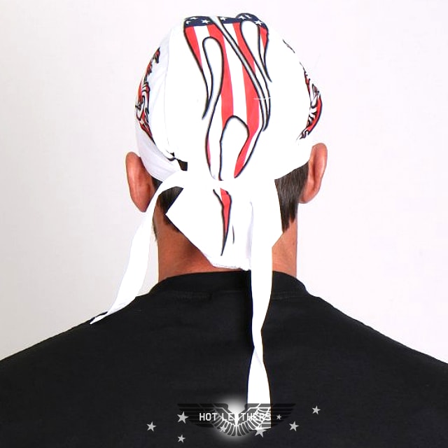 【送料無料!】日本未発売!米国直輸入!セール価格! ホットレザー アメリカン バイク ホワイト プレミアム ヘッドラップ [American Bike White Headwrap] 白 星条旗 炎 ヘルメットインナー バンダナキャップ インナーキャップ サイズフリー! バイクに! ターバン 汗止めに!