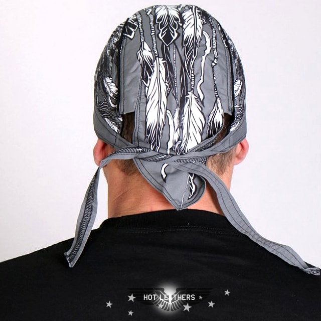 【送料無料!】日本未発売!米国直輸入!セール価格! ホットレザー インディアン チーフ プレミアム ヘッドラップ [Indian Chief Headwrap] グレー 羽根 スカル ヘルメットインナー バンダナキャップ インナーキャップ 海賊巻 サイズフリー! バイクに! ターバン 汗止めに!
