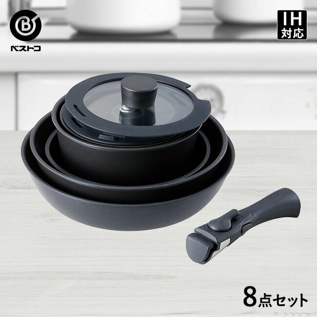 ワンハンドル ダイヤモンドコート IH フライパン 8点セット | フライパンセット セット ガス 炒め鍋 片手鍋 取っ手が取れる 26cm 20cm 18cm ガス火 26センチ 取っ手の取れる 20センチ 18センチ 16cm ディープパン 鍋蓋 深型フライパン ダイアモンドコート 新生活