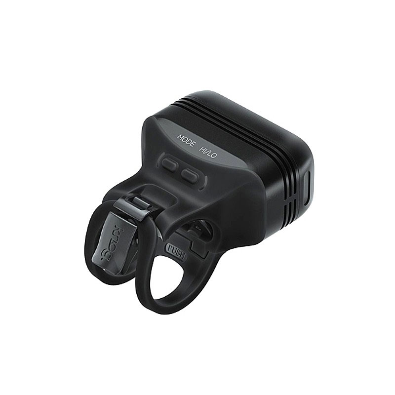 フロントライトでは珍しい横長のデザインでハンドルバーに取り付けても上や下に出っ張ることなくスッキリとスタイリッシュ。