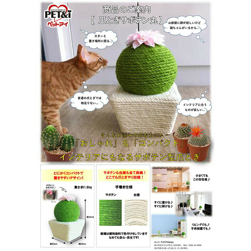 サボテンも台座も全て麻縄の手巻き仕様!どこでも爪とぎやり放題。