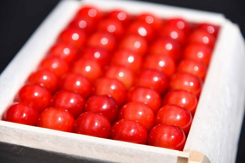 桐箱入りならではの高級感と職人の丁寧な仕事が、真っ赤なさくらんぼをまるで宝石箱のルビーのように輝いて見せてくれます。