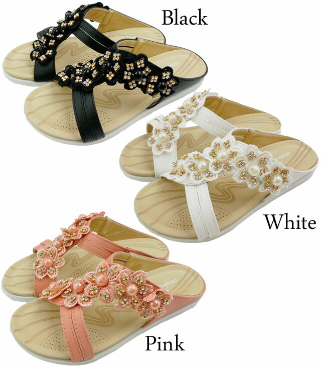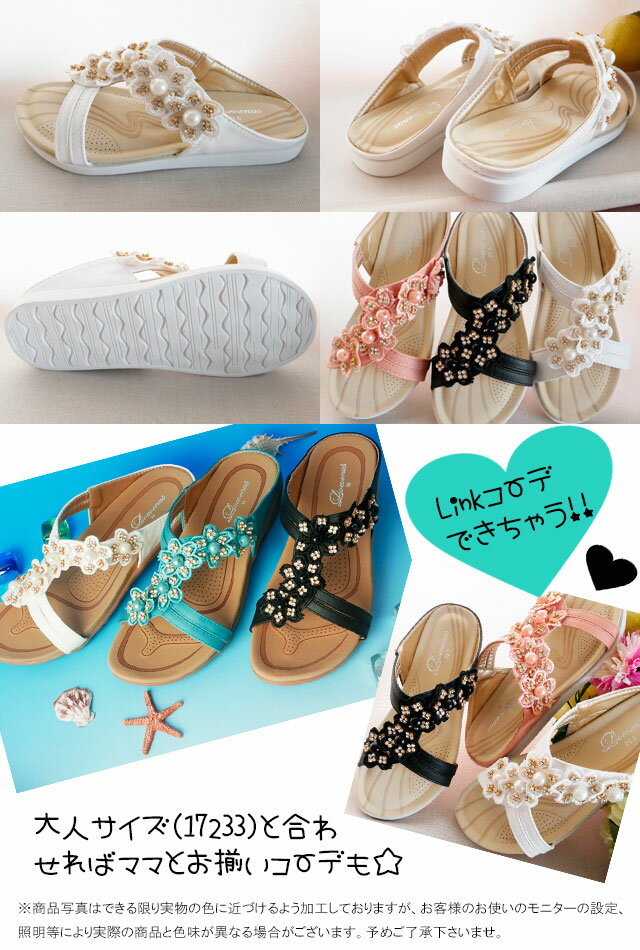 ■商品説明 キッズ ジュニア 17526 女の子 子供靴 サンダル BLACK(ブラック)WHITE(ホワイト)PINK(ピンク)夏の素足に、きらきら輝くビジューが華やか!サッと脱ぎ履き出来る定番シルエットは夏の味方☆
