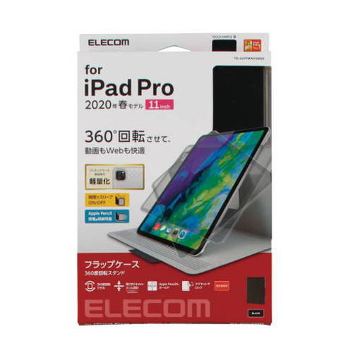 elecom エレコム iPad Pro 11インチ 2020年モデル フラップケース ソフトレザー 360度回転 ブラック TB-A20PMWVSMBK(代引不可)【送料無料】