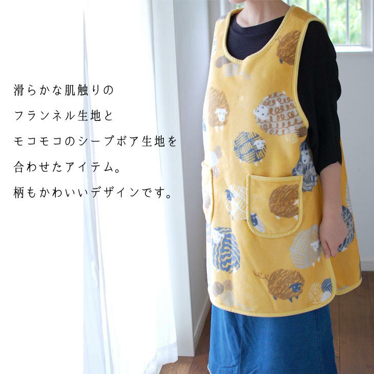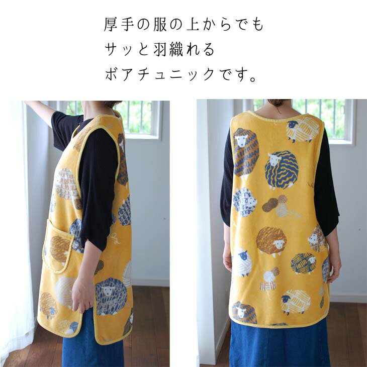 【SALE】【スリッパプレゼント】チュニック エプロン ボア 裏ボア おしゃれ かわいい カワイイ 可愛い 秋冬 防寒 ルームウエア シープボア 動物柄 ヒツジ 羊 森 プレゼント ギフト 65×90 コージー ボアチュニック【72431】【72432】【72433】【72434】