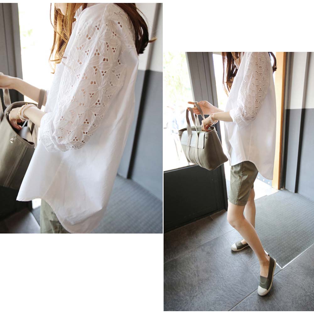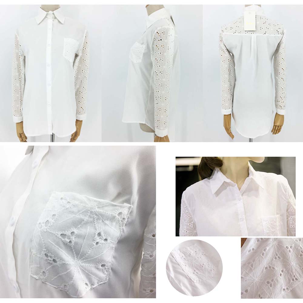 白 S/M/L 上品で可愛い花柄の透かし刺繍で、フェミニンさをアップ 清楚で上品、女性らしくて落ち着いた大人っぽい風合いのブラウスです。