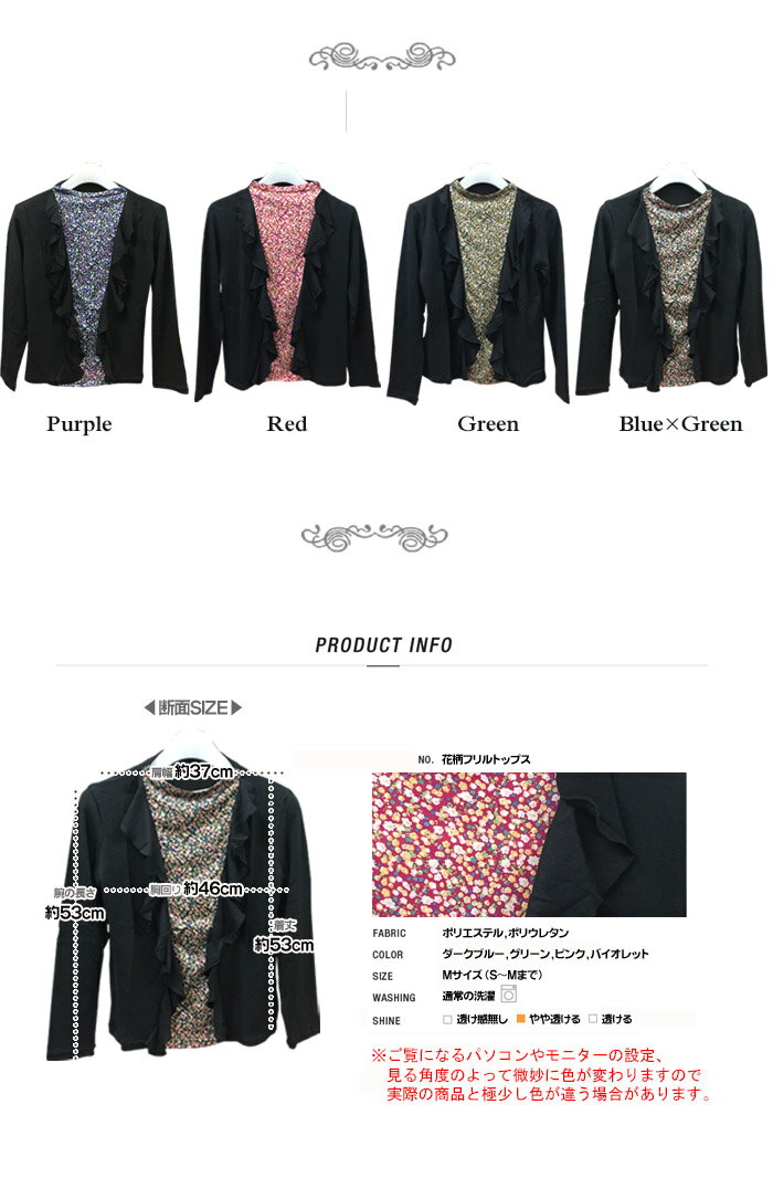 4色【花柄 フリル トップス】Mサイズ レディース インナー トップス 高品質 長袖 Tシャツ 女性 ファッション カラフル ガール カジュアル 重ね着 オールシーズン活躍 オシャレ 春 秋 商品価格:1,045円 レビュー件数:0件 レビュー平均:0(5点満点) 楽天で購入 トップページへ