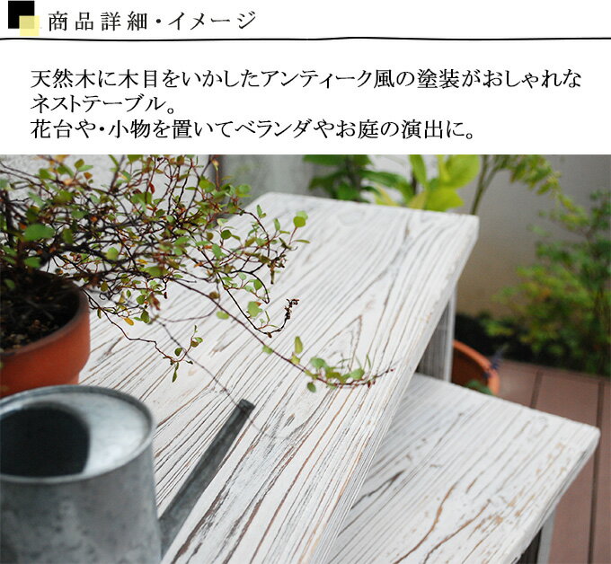 花台や小物を置いてベランダやお庭の演出に!商品詳細サイズ幅400×奥行250×高さ360mm重量3(kg)材質天然杉材備考1アンティーク仕上げ備考2お客様組立てご注意※花台ですのでテーブルとしては使用できません。