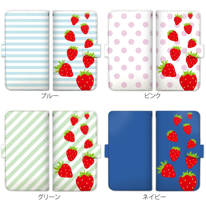 スマホケース 全機種対応 手帳型 携帯ケース 食べ物 イチゴ いちご 苺 ボーダー ドット ポップ スマートフォン ケース 手帳型ケース iPhone12 mini Pro Max SE 11 Pro Max XS XR X 8 7 AQUOS sense R R2 ZETA GALAXY S8 S9 Feel Xperia XZ3 XZ2 XZ1 XZs