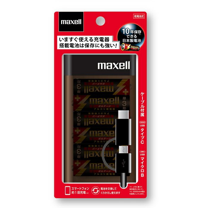 【新製品】【公式】 マクセル maxell アルカリ乾電池式充電器 乾電池式チャージャー アルカリ乾電池6本(ボルテージ)同梱 電池式充電器チャージャー 10年保存できる日本製ボルテージ同梱 乾電池チャージャー