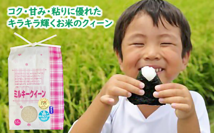ミルキークイーンの白米は、少し白濁しているのが特徴で、炊き上がるとキラキラと輝き、コク・甘み・粘りがあるので濃いめの味付けのお料理と非常に相性が良く、冷めても美味しいのでおにぎりにも最適です。