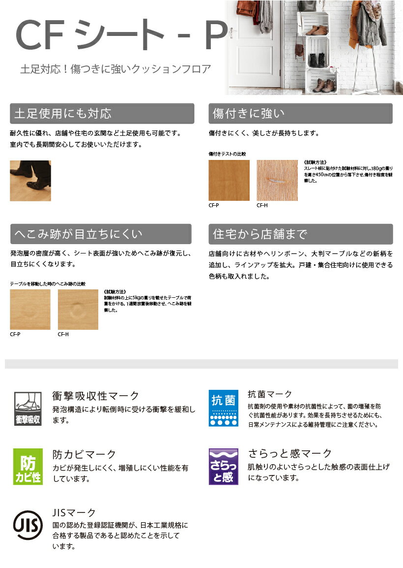 】 ※例:1mを購入したい場合は、商品個数に10枚と入力下さい 例:1.8mを購入したい場合は、商品個数に18枚と入力下さい 【仕様】 サイズ 2.3mm厚/182cm巾 リピート:タテ91cm ヨコ182cm 一柄:約23cm×23cm 機 能 抗菌、防カビ性、衝撃吸収、土足OK 材 質 表面抗菌加工 塩化ビニール 特 徴 クッション性があり滑りにくいので、足にやさしく、ペットにも快適です。