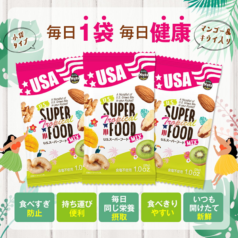 US SUPERFOOD Tropical USスーパーフード トロピカル 1kg (28g×36袋) ミックスナッツ 箱入り アーモンド(アーモンド等級:US Extra No.1) くるみ カシューナッツ ブラジルナッツ ドライマンゴー ドライキウイ 便利な小分けタイプ 個包装 小分け