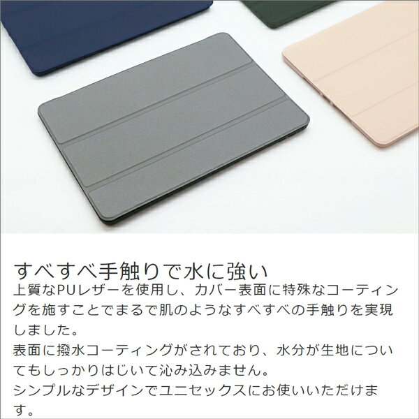 すべすべ手触りで水に強い 上質なPUレザーを使用し、カバー表面に特殊なコーティングを施すことでまるで肌のようなすべすべの手触りを実現しました。