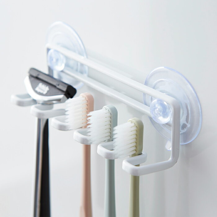 「吸盤トゥースブラシホルダー5連」は、雑菌の繁殖しやすい歯ブラシや電動歯ブラシの替えを清潔に収納・乾燥できるホルダーです。