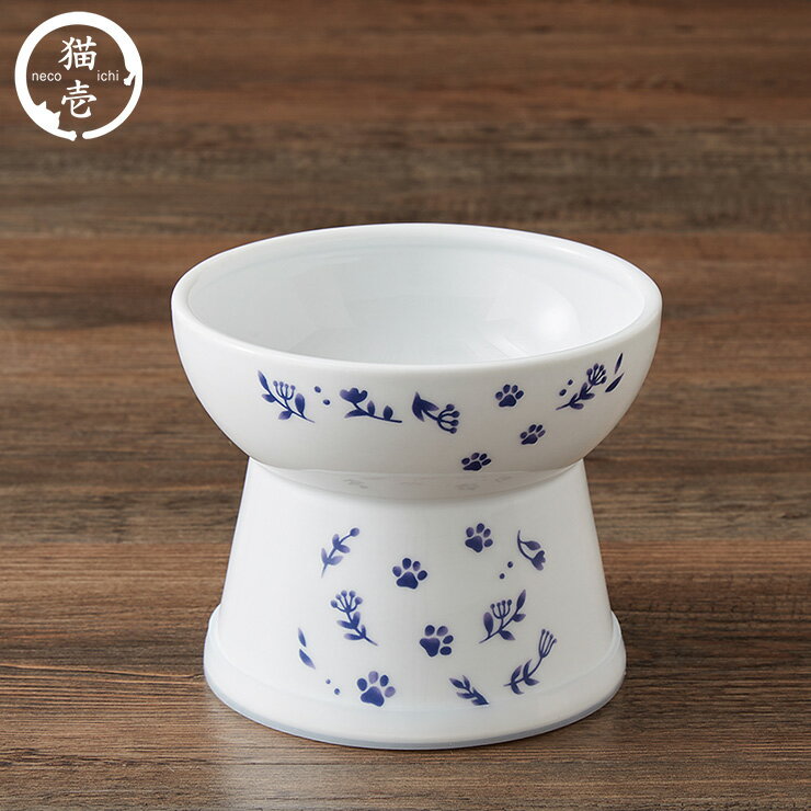 猫壱 脚付フードボウル Lサイズ ネイビー 滑り止めシリコン付き ハッピーダイニング 猫 餌皿 餌入れ 皿 ボウル 磁器製 猫用 猫柄