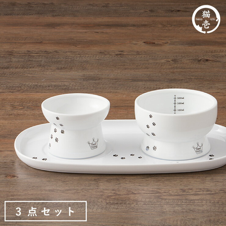 猫壱 ハッピーダイニング3点セット 脚付きフードボウル ウォーターボウル トレー【送料無料】