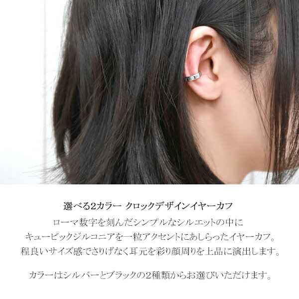 選べる2カラー スワロフスキージルコニア ローマ数字 イヤーカフ 1P 片耳用 シルバー925 ノンホールピアス 時計 繊細 小さめ 綺麗 上品 シルバー ブラック メンズ レディ—ス 男性 女性 彼氏 彼女 プレゼント ブランド 人気 おしゃれ
