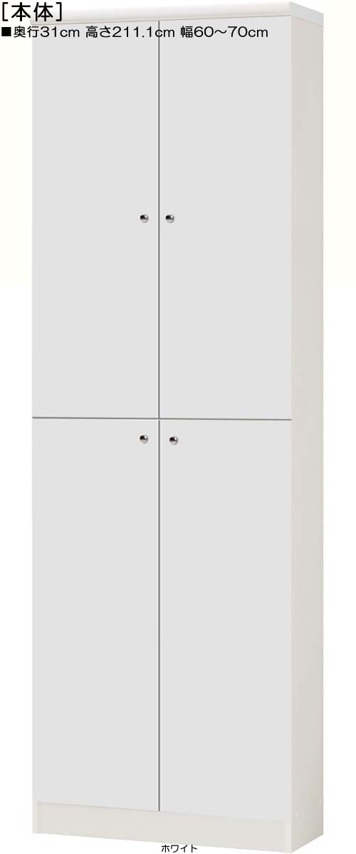 全面扉オーダー壁面収納 高さ211.1cm幅60〜70cm奥行31cm 上下共両開き 全面扉付ランドリー収納