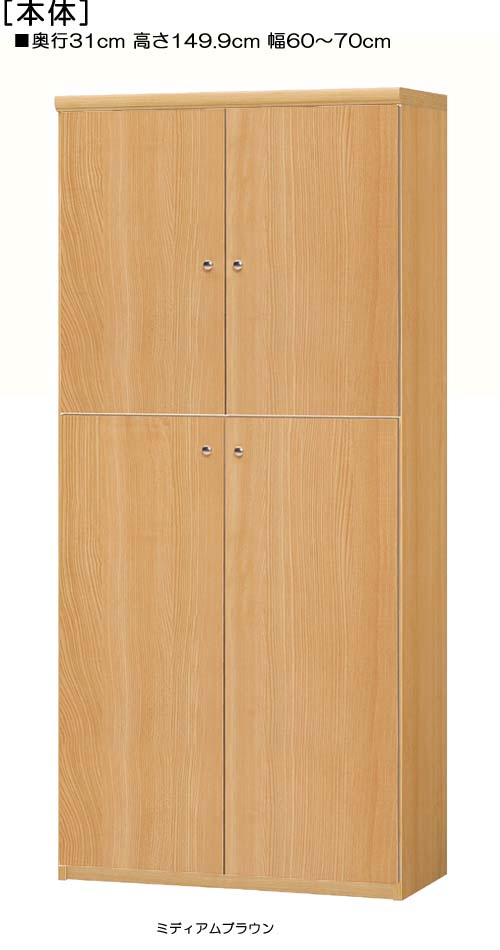 フラット扉キッチン棚 高さ149.9cm幅45〜59cm奥行31cm厚棚板(棚板厚み2.5cm) 上下共両開き フラット扉付和室本棚