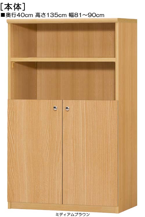 扉付A4ファイル書庫高さ135cm幅81〜90cm奥行40cm厚棚板(棚板厚み2.5cm)両開き 扉高さ72.5cm 扉付寝室本棚 A4ファイル書庫