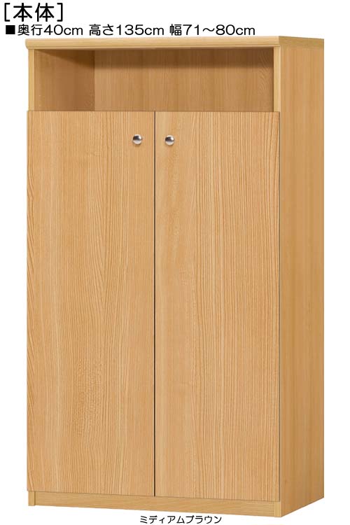 扉付A4ファイル書庫高さ135cm幅71〜80cm奥行40cm厚棚板(棚板厚み2.5cm)両開き 扉高さ109.5cm 扉付応接間本棚 A4ファイル書庫