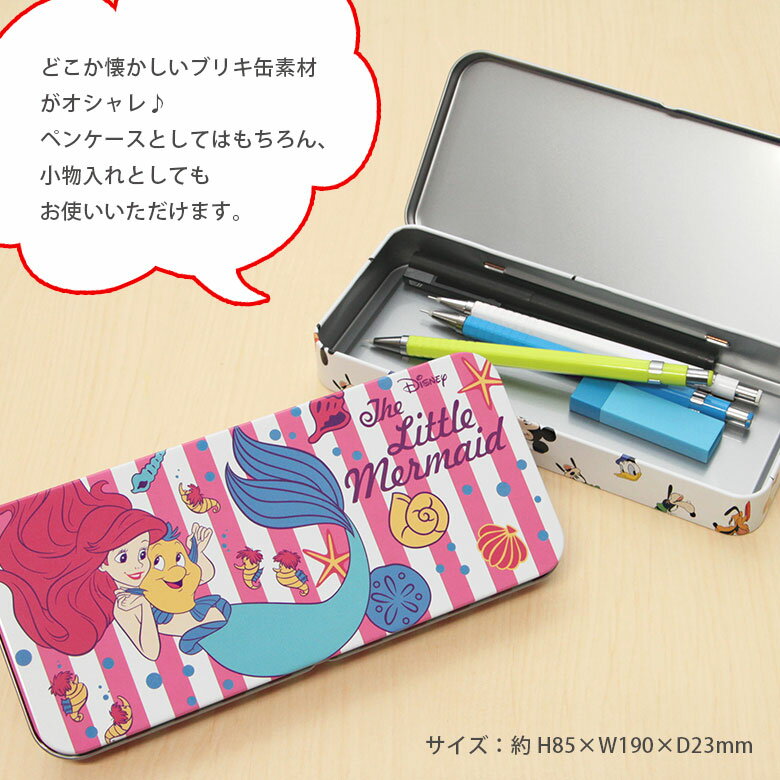 ディズニー 缶ペンケース 筆箱 アリエル ペンケース ブリキ缶 レトロ かわいい 雑貨 大きめ 筆箱 カンペンケース ピンク キャラクター グッズ 収納 ペン入れ リトルマーメイド おしゃれ プリンセス 筆記用具 小物