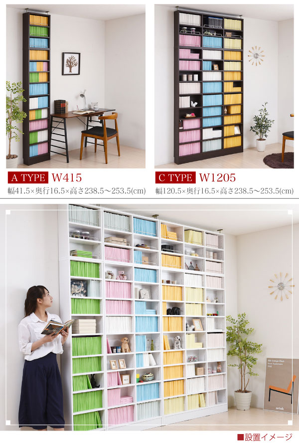 突っ張り上置きセットなので天井まで空間の無駄を省いて大量収納。