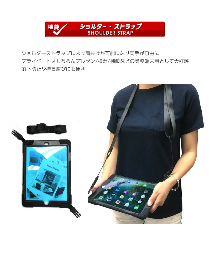 【送料無料】多機能 ショルダーストラップ付 アイパッドケース【iPad ハードケース マルチ カバー 360度 回転 ミニ ハンドホルダー スタンド ビジネス プレゼン 旅行 トラベル 落下防止 保護 仕事 業務用 9.7 第5世代 第6世代 pro 10.5 mini air 11 シリコン】