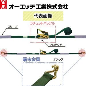 OH(オーエッチ工業) 荷締機 ラッシングベルト Aシリーズ ラチェットバックル AWR600J ワイドハンドル 端末金具:Jフック ベルト長さ:固定側1/巻取側5m