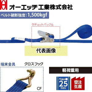OH(オーエッチ工業) 荷締機 ラッシングベルト LBR70 CF5-40CF ラチェットバックル 端末金具:クロスフック ベルト長さ:固定側0.5/巻取側4m [受注生産品]
