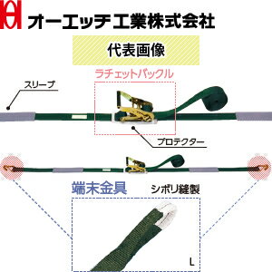 OH(オーエッチ工業) 荷締機 ラッシングベルト Aシリーズ ラチェットバックル AWR300L ワイドハンドル 端末金具:シボリ縫製 ベルト長さ:固定側1/巻取側4m