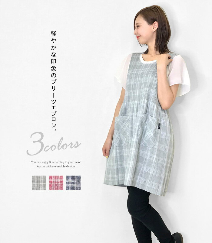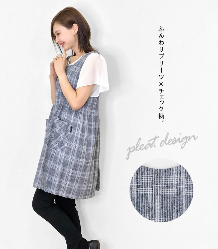 ・サイズ(平置き採寸) 着丈:約84cm 身幅:約44cm ・素材 ポリエステル 100% エプロン,胸当て,レディース,可愛い,かわいい,おしゃれ,チュニック,プルオーバー,ワンピース,フラワー,チェック,人気,母の日,ギフト,プレゼント楽ちんなのに大人っぽく着れるプリーツエプロン♪