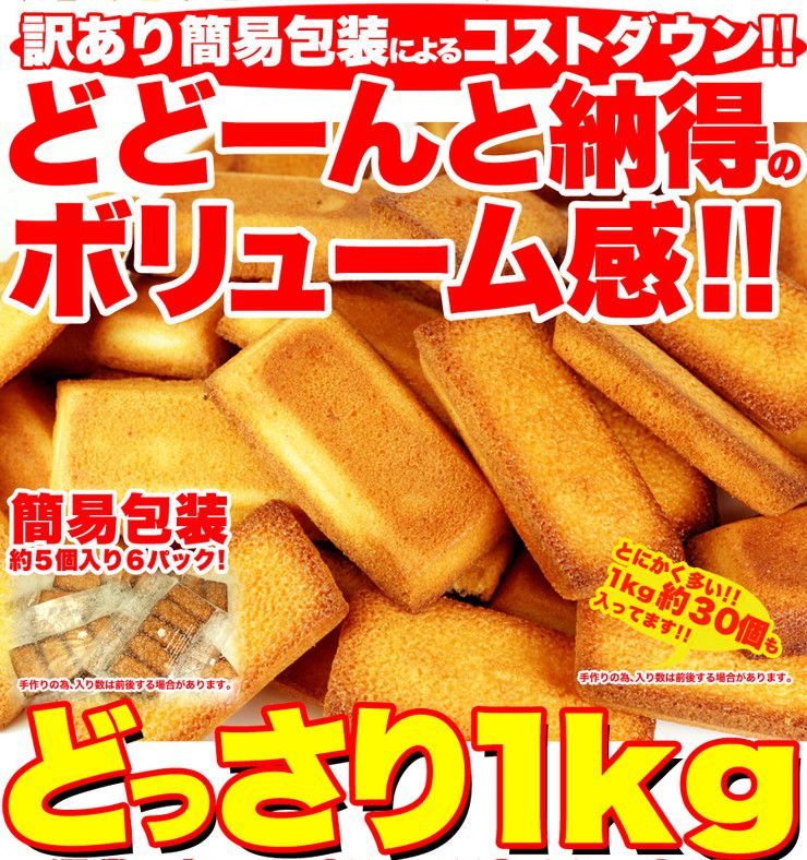■品名:フィナンシェ1kg■名称:焼き菓子■原材料名:グラニュー糖、卵白、マーガリン、小麦粉、バター、アーモンドプードル■内容量:1kg■賞味期限:製造より常温1ヶ月(約10日〜1ヶ月弱賞味期限が残ったものでのお届けとなります)■保存方法:高温・多湿を避け、開封後はなるべくお早めにお召し上がり下さい。