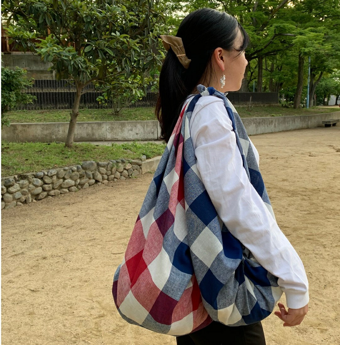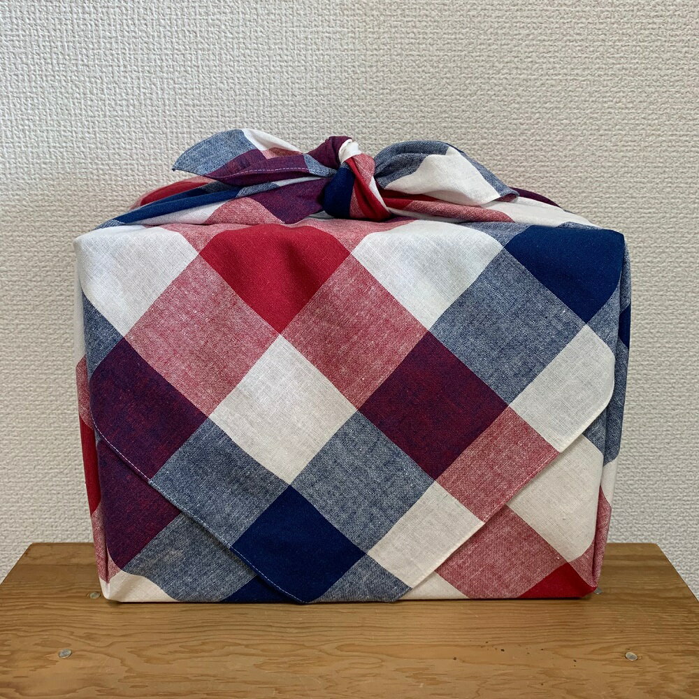 素材:綿50%、麻50 日本製柄:ブロックチェックカラー:レッド(ネイビーもあります!)包む、羽織る、インテリアにも使えるマルチクロスです。