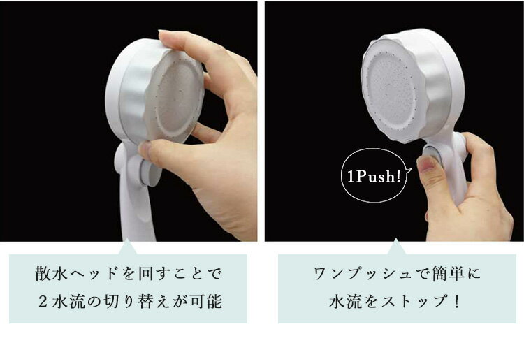 散水ヘッドを回すことで2水流(シャワー水流⇔ミスト水流)の操作を実現。
