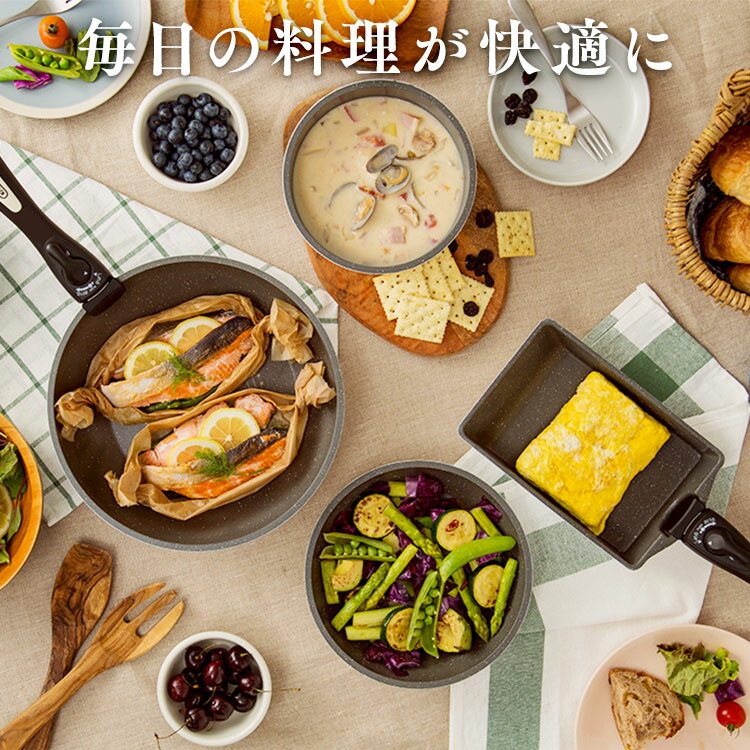 ダイヤモンドコーティングを使用した、こびりつきにくく丈夫で長持ちするガス火対応のフライパンセットです。