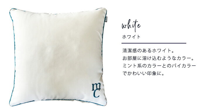商品詳細 商品名 MC basic クッションカバー 素材 ポリエステル100% 生産国 中国 カラー ネイビー・ホワイト・ミント サイズ 約45×45cm ※ご注意 ・ 中材はついておりません。
