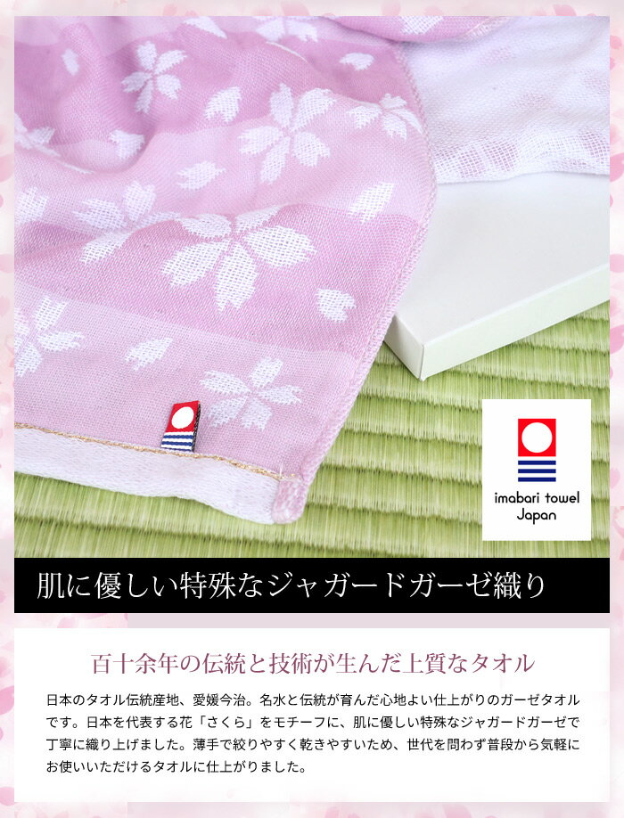 日本を代表する花、「桜」をモチーフに、肌に優しい特殊なジャガードガーゼで、丁寧に織り上げました。